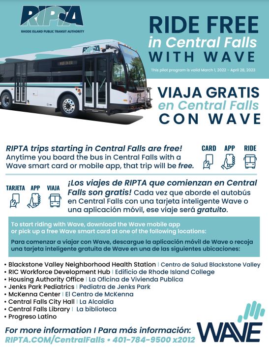 In order to take advantage of the free rides offered through the program, RIPTA riders must download the Wave mobile app or obtain a Wave card. The geofencing software communicates with RIPTA’s Wave smart fare system and automatically waives the fare when a passenger boards with a Wave smart card or mobile app in Central Falls.